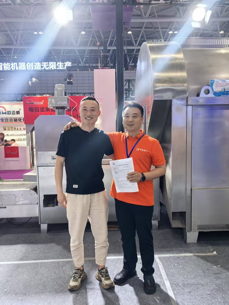 展會現(xiàn)場簽約不斷!山東客戶選定許昌智工八米流水線電磁炒貨機