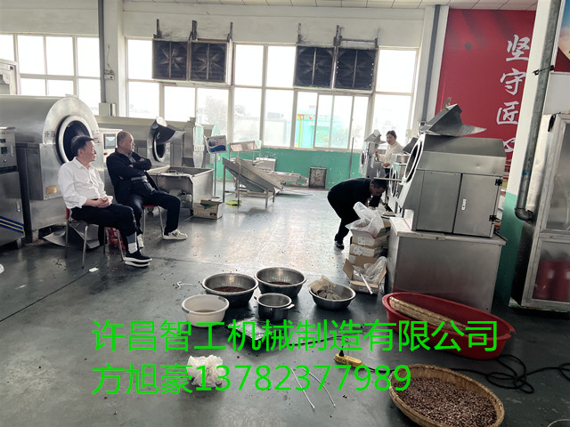 現(xiàn)場用小型電磁炒貨機和流水線設備進行多方位試驗炒制,客戶非常滿意。