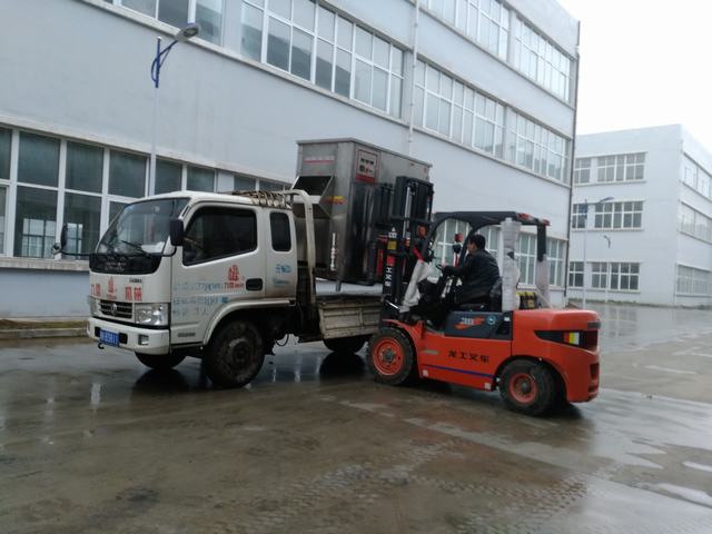風(fēng)雨無阻,發(fā)往山東棗莊的自動(dòng)脫毛機(jī)裝車實(shí)拍圖片
