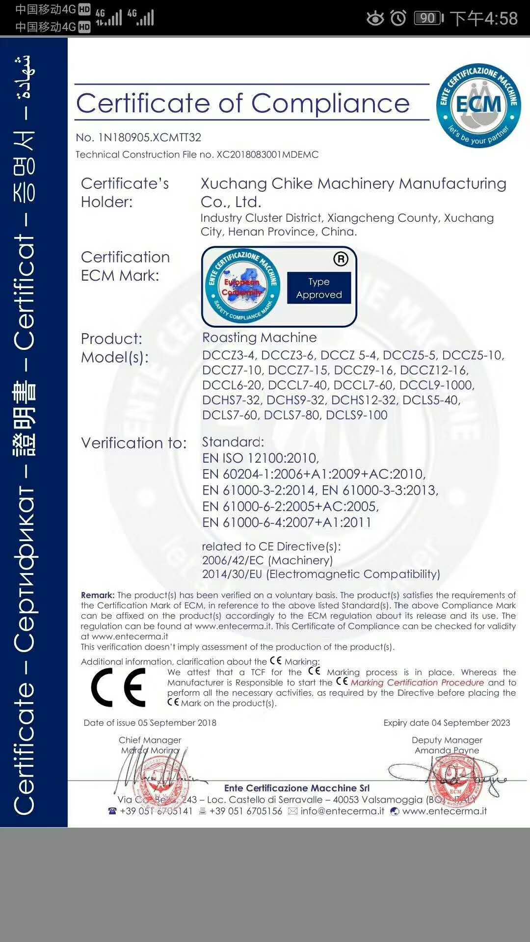 許昌智工產(chǎn)品已經(jīng)通過歐盟CE認(rèn)證,所有產(chǎn)品已經(jīng)通過安全,衛(wèi)生,環(huán)保和消費(fèi)者保護(hù)等一系列歐盟標(biāo)準(zhǔn)要求。