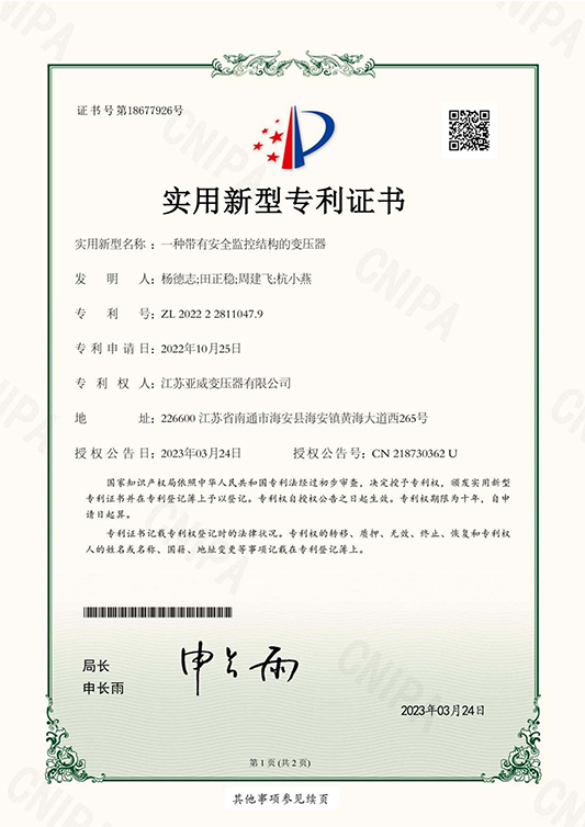 亞威集團(tuán)創(chuàng)建于1993年,現(xiàn)擁有員工2000多名,其中工程技術(shù)人員300多名,公司占地900多畝,公司產(chǎn)品包括500KV、400KV、330KV、220KV以及110KV型超高壓變壓器、35KV及以下各種干式變壓器/油浸式變壓器/非晶合金變壓器、風(fēng)光儲(chǔ)新能源變壓器、預(yù)裝式變電站;出口系列:?jiǎn)蜗喾w美變、三相美變、圓筒變、隔離變、控制變、穩(wěn)壓器等產(chǎn)品;以及各種規(guī)格的接地變、消弧線(xiàn)圈、比特幣變、預(yù)制艙、電抗器、電爐變、整流變、礦用變、船用變等特種變壓器。公司產(chǎn)品通過(guò)變壓器質(zhì)量監(jiān)督檢驗(yàn)中心、中國(guó)電力科學(xué)研究院武漢分院以及蘇州電器科學(xué)研究院的例行、型式、特殊試驗(yàn)。企業(yè)先后通過(guò)ISO9001、ISO14001、ISO45001、SA8000體系認(rèn)證,江蘇省企業(yè)計(jì)量合格認(rèn)證。同時(shí)10KV、35KV級(jí)配電變壓器、箱式變電站,產(chǎn)品銷(xiāo)售覆蓋如美國(guó)、歐洲、加拿大、墨西哥等多個(gè)國(guó)家及地區(qū)。