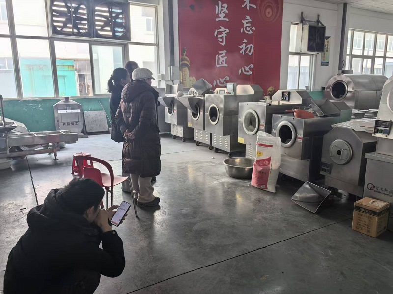 鶴壁客戶來(lái)廠試機(jī)小型炒貨設(shè)備炒芝麻當(dāng)場(chǎng)定購(gòu)小型炒貨設(shè)備。