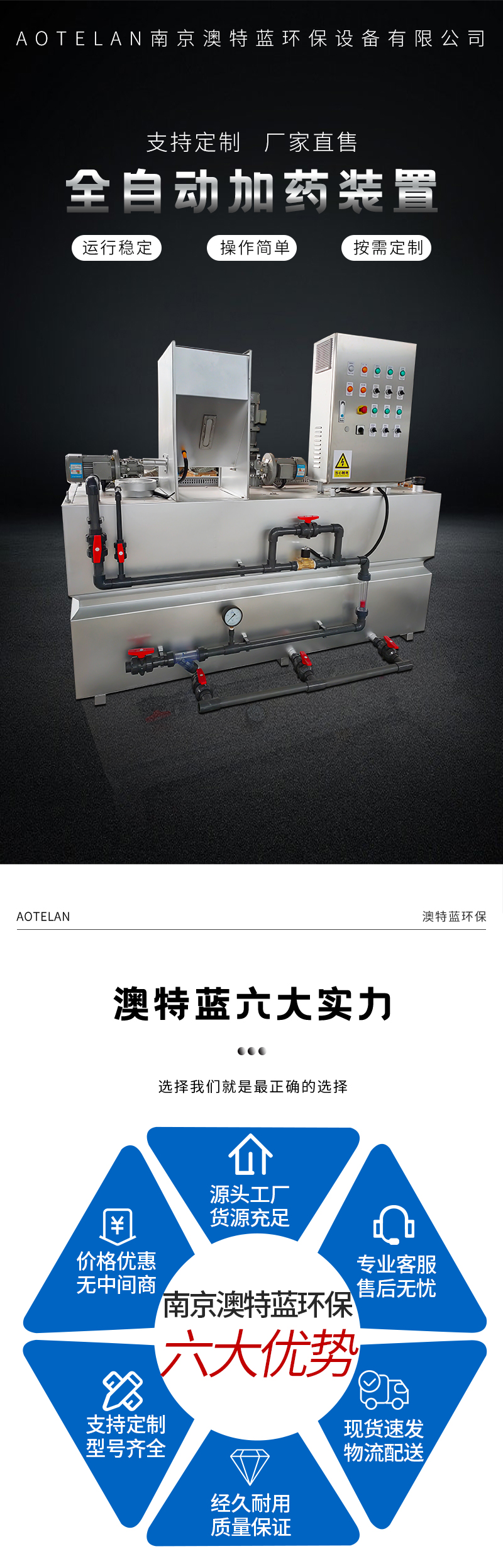 自動加藥裝置是我司主營產(chǎn)品。在給水、排水處理過程中,常投加各類化學(xué)藥劑作為阻垢殺菌滅藻、混凝、絮凝用,以達到凈化水的目的。這些藥劑有固體顆粒、液體,在投加過程中必須溶解、稀釋及按配比定量投加方能取得較佳效果,所以加藥裝置是一種集投藥、攪拌、輸送液體、自動控制于一體的成套設(shè)備。一般用于需要投加緩蝕劑、阻垢劑、殺菌劑的循環(huán)水系統(tǒng),進行水質(zhì)處理藥劑的準確投加與計量。廣泛應(yīng)用于空調(diào)循環(huán)冷卻水、中水回用系統(tǒng)、廢水系統(tǒng)、鋼鐵、石化、火電、造紙、微電子、醫(yī)藥等行業(yè)的工藝循環(huán)冷卻水系統(tǒng)。