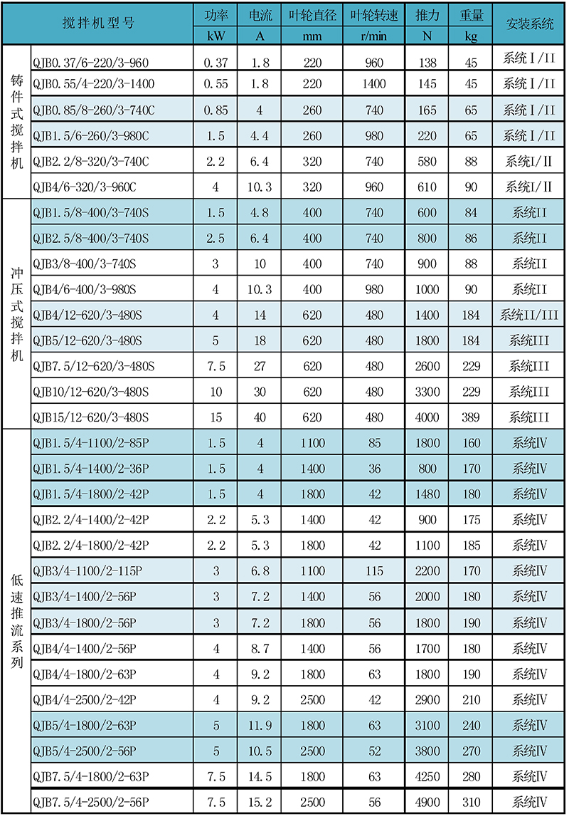QJB 型潛水?dāng)嚢铏C可分為混合攪拌和低速推流兩大系列。